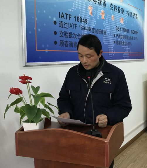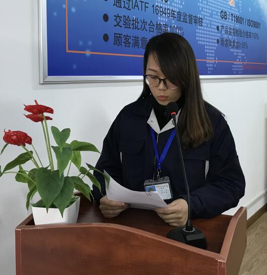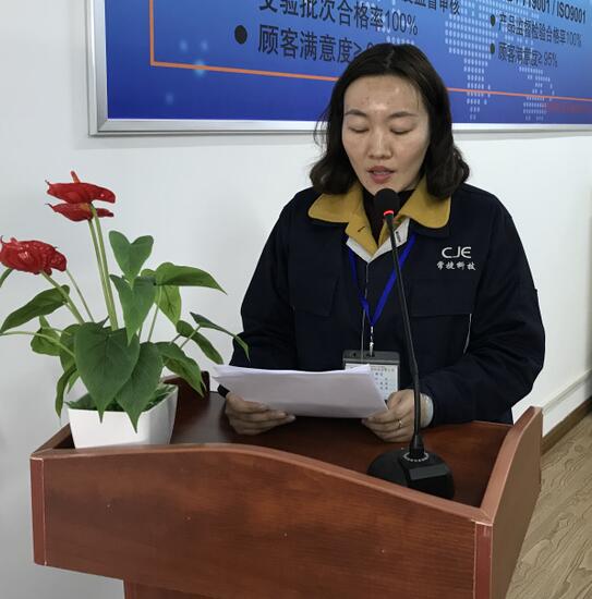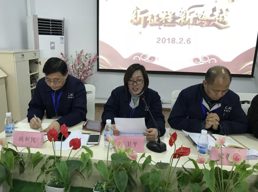 副總經(jīng)理陳衛(wèi)平女士宣讀了公司對2017年度涌現(xiàn)出的先進集體和先進個人的表彰決定,并與副總經(jīng)理/副總工程師焦志勇先生聯(lián)袂頒獎。